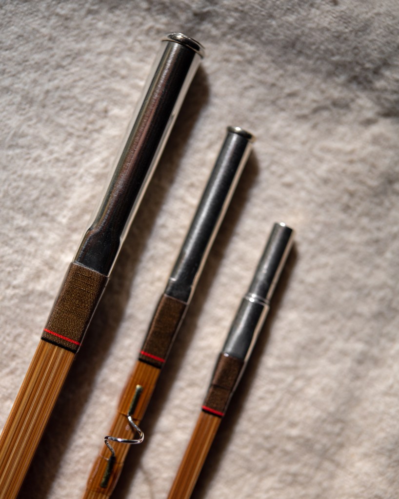 The first taper is a 9ft 6/7wt “boat rod” or “lake rod” in 3 piece. This is hollow built with a 1″ removable fighting butt, and comes in at about 5oz assembled weight. Very light in hand for such a long powerful rod, inspired by E.C. Powell’s B and C tapers- a blend of smoothness and speed with the strength to handle big fish. Think long casts on the back of a drift boat on larger water. I had the Delaware system in mind when I was designing it but I think it would be well suited for rivers out west as well.